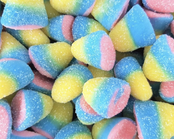 - Ingrédients : (sous réserve de modifications par le fabricant) Sirop de glucose, Sucre, Gélatine; Acidifiant: Acide citrique, Acide malique; Humectant: Glycérol; Gélifiant: Pectines; arômes; Correcteur d'acidité: Malates de sodium; Concentré végétale: Radis, Cassis, Carotte, Colorants: E100, E120, E133.