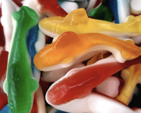 - Ingrédients : (sous réserve de modification par le fabricant) Sirop de glucose, eau, sucre, amidon de maïs, stabilisants : gélatine de boeuf, pectine, acidifiants : E330, E334, E296, arômes, huile bégétale (de palme et de coco), agent d'enrobage : cire de caranuba, citrate de sodium, colorants : E100, E120, E133.